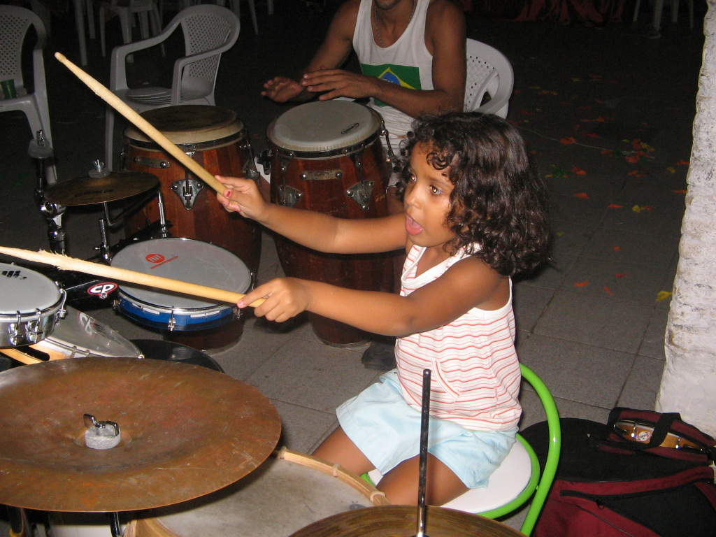 Sexta foi aniversário de Jack. 30 anos 30 caixas… Esse era o slogan. Como todo aniversário dos “brothers” fazemos um som, tocando na maior parte do tempo coisas diferentes, que não rolam sempre. Pois é… quando cheguei me bati logo de cara com minha “sobrinha” Ana Sophia (5 anos), filha dos meus amigos Batata e Paty, que, como sempre, me esnobou. Insisti por diversas vezes para que ela me desse um beijo e nada. Tá… tudo bem. Tirei as coisas do carro e fui montar minha “percuteria”. Estava eu distraído, apertando uma “borboleta” que fixa alguma peça do set, quando fui surpreendido com um beijo na bochecha, desferido pela supracitada danadinha, seguido da seguinte frase: