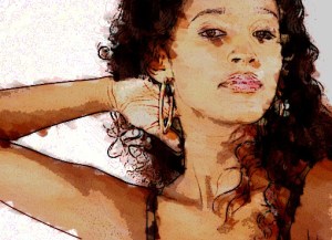 Por último, fiz outro dia umas coisas de brincadeira. Uma delas foi em cima de uma foto de Érica. Ela não gostou mas vou postar assim mesmo porque eu achei massa.